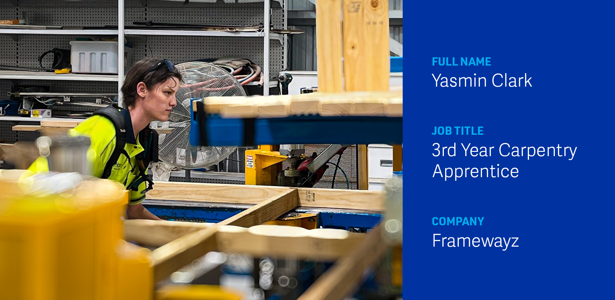 Out on site, there are inspiring stories of women helping shape the future of the frame and truss industry. Meet Yasmin — a third-year carpentry apprentice who is challenging stereotypes, building confidence and crafting her career in construction on